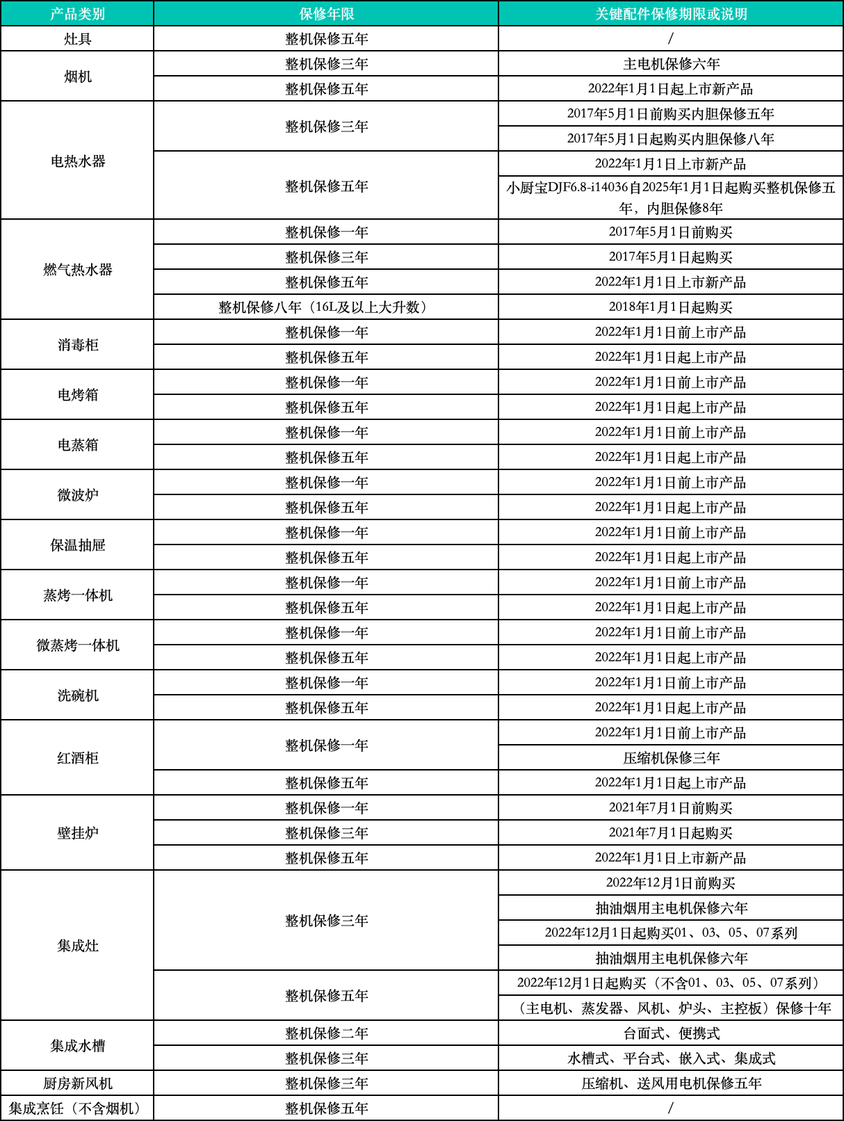 1、2020年1月1日之前購買的產品自消費者購買之日起計算保修期,2020年1月1日后購買的華帝股份系列產品自消費者安裝之日起計算保修期;